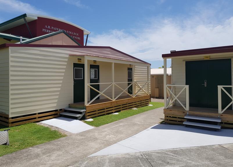 Our first assignment with AB Paterson School was supplying and installing transportable modules to be adapted as sound proof music rooms. Apart from the supply and installation of modules, this project included designing the most practical layout of two module buildings within a confined quadrangle.
